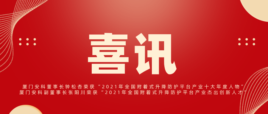 4月10日,2021年全國附著式升降防護平臺企業家年會暨第二屆防護平臺質量安全標準化發展論壇在深圳召開,會上頒發了“2021年全國防護平臺十大年度人物及杰出創新人才”獎項,經組委會評定,廈門安科科技有限公司(以下簡稱“廈門安科”)董事長鐘松杏獲評“2021年全國附著式升降防護平臺產業十大年度人物”稱號,廈門安科副董···