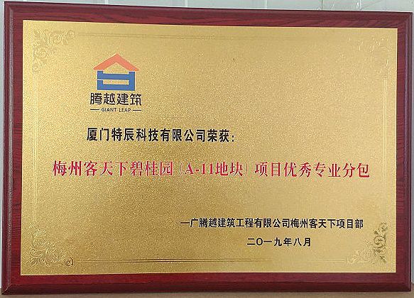 ?廈門(mén)安科旗下全資子公司—廈門(mén)特辰科技有限公司榮獲廣騰越建筑工程有限公司頒發(fā)的“優(yōu)秀專(zhuān)業(yè)分包”榮譽(yù)牌匾