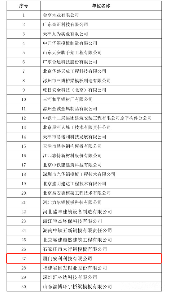 今日,中國(guó)模板腳手架協(xié)會(huì)公布了第二批入選中國(guó)鐵建集采平臺(tái)會(huì)員企業(yè)名單,廈門(mén)安科科技有限公司(以下簡(jiǎn)稱(chēng):廈門(mén)安科)憑借雄厚的科研創(chuàng)新能力、優(yōu)質(zhì)的發(fā)展?jié)摿土己玫钠放茖?shí)力等方面被協(xié)會(huì)推薦入選進(jìn)入中國(guó)鐵建集采平臺(tái)系統(tǒng)——鐵建商城(CRCC商城)。