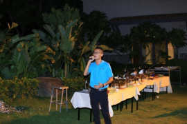 “偷得浮生半日閑”,享受完溫?zé)崛妮p松愜意,在兩位美麗女主持開(kāi)場(chǎng)中,執(zhí)行董事鐘總拉開(kāi)博餅活動(dòng)第一炮,博餅活動(dòng)火熱開(kāi)場(chǎng)!