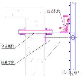 1、防墜落裝置應設置在豎向主框架處并附著在建筑結構上,每一升降點不得少于一個防墜落裝置,防墜落裝置在使用和升降工況下都必須起作用;??