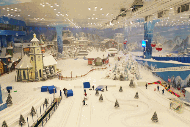 看到如今這個充滿阿爾卑斯風情的冰雪世界,很難想象它的前身是一個落差近百米的巨型深坑。這個深坑是原長沙新生水泥廠歷史50年開采遺留下來的礦坑,深100米、長440米、寬350米,上口面積18萬平方米,是一個滿目瘡痍、千溝萬壑、雜草叢生的地表“瘡疤”。